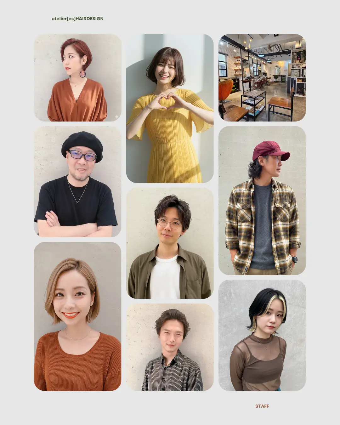 「東京」「代官山」「福岡」 「横浜」と、各地で経験を積んだスタッフや、オーナーを務めたスタッフが在籍しています。世界中を旅したスタッフもおります。美容以外の話題も多く頼れるスタッフが多いサロンです。